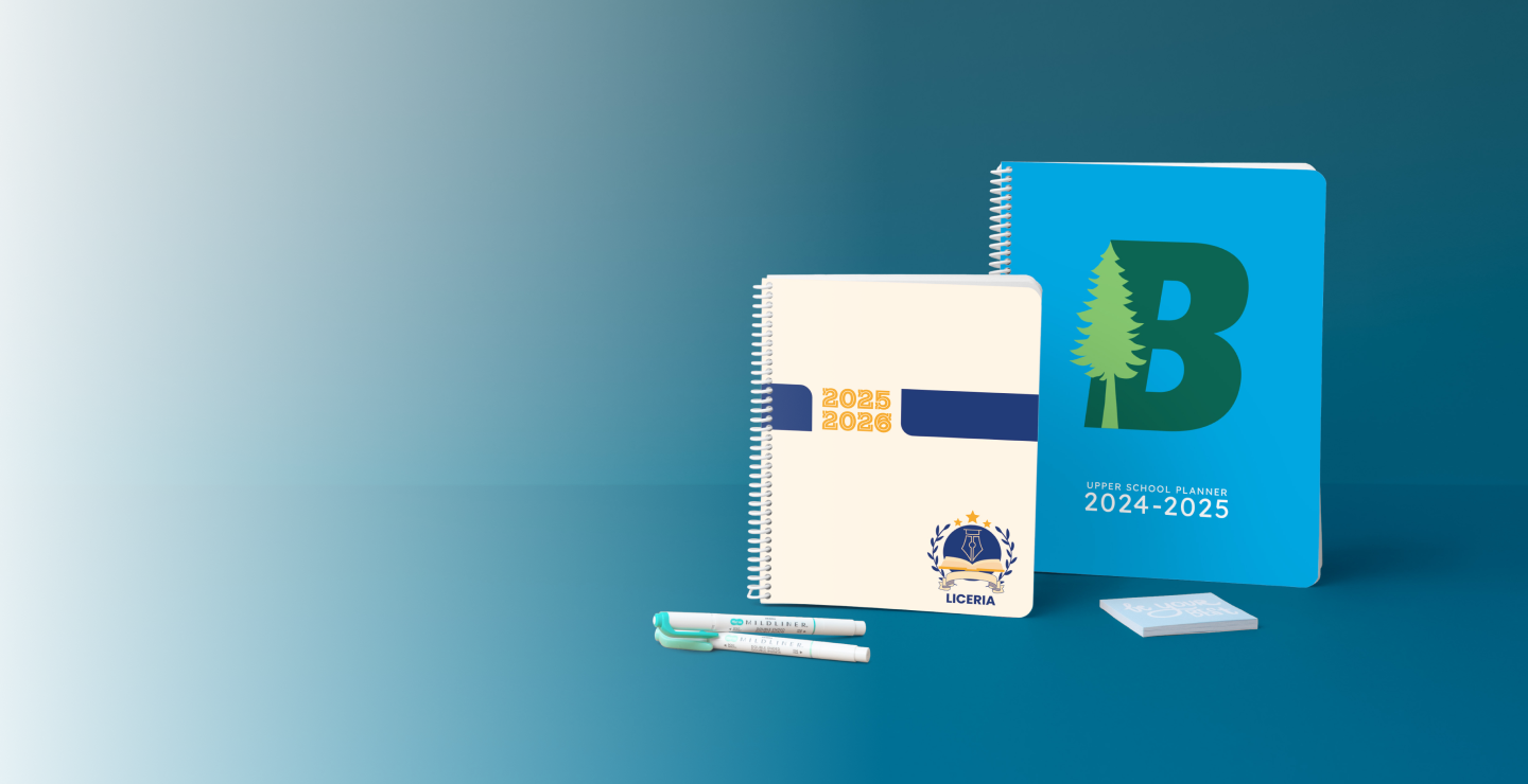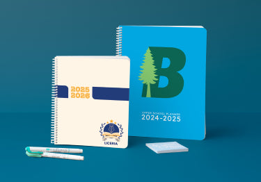 Give us your logo and colors to add to one of our existing school planner covers or create your own design.